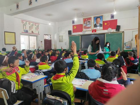 “我看到了一只大大的牦牛!”“是牦牛在吃草!”孩子们争先恐后地回答,脸上洋溢着兴奋和自豪。志愿者引导孩子们:“大家说得都很棒!用普通话描述事物,可以让更多的人理解我们,也能让我们更好地了解外面的世界。”