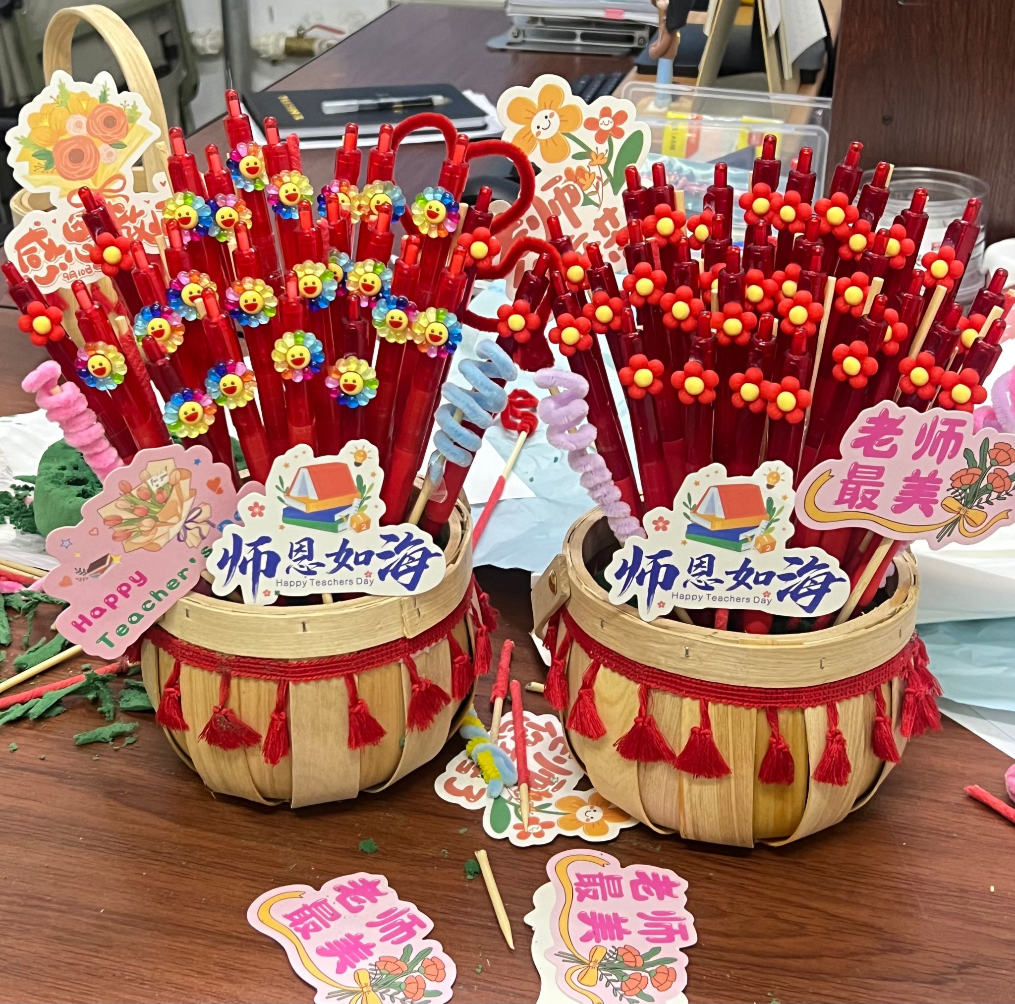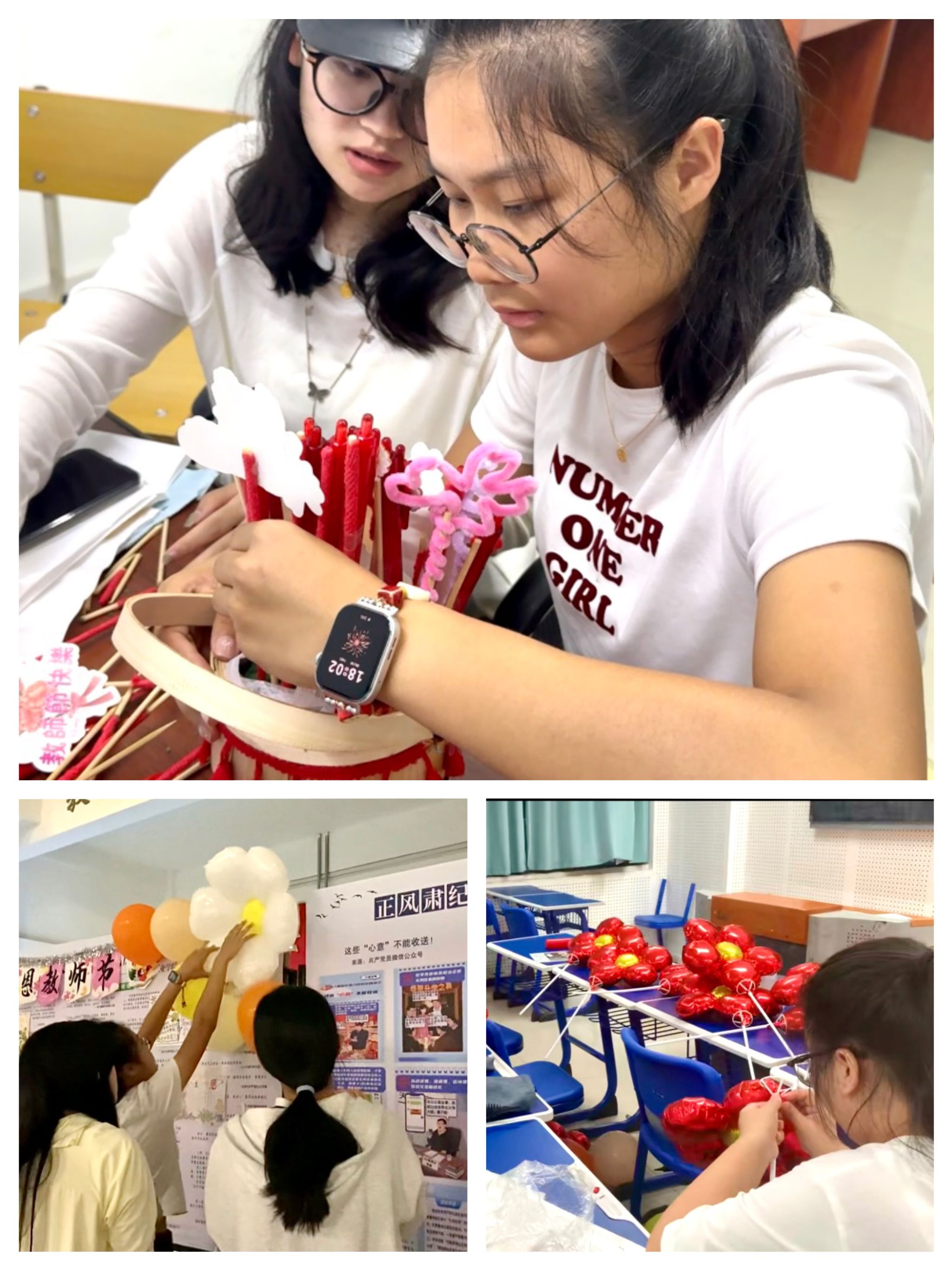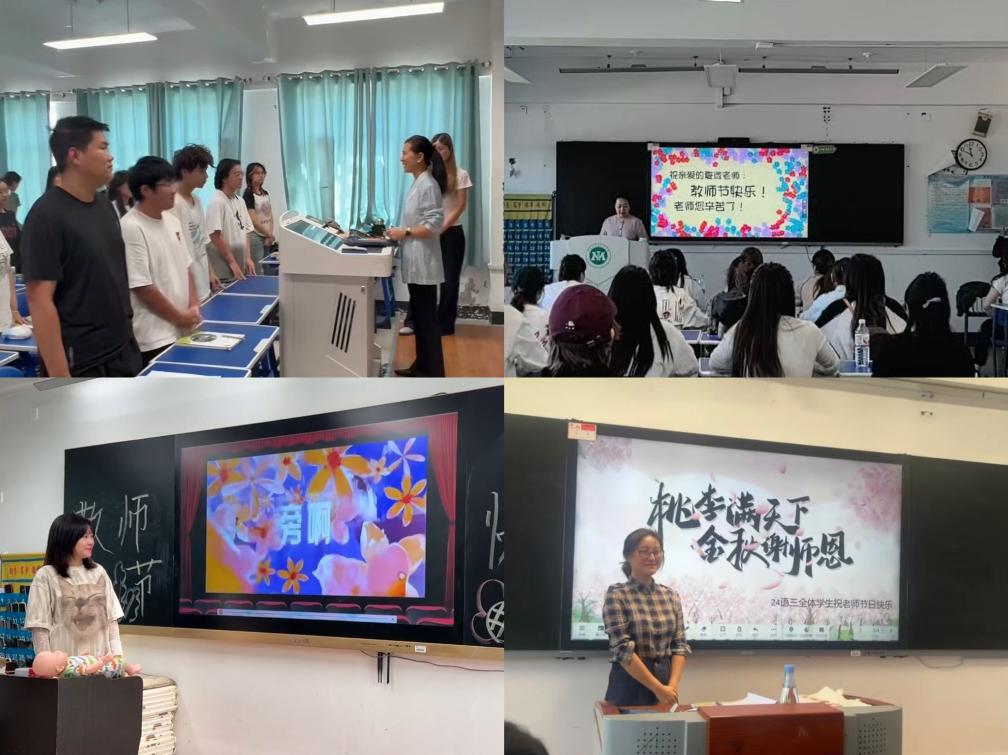 课堂上的惊喜仍在延续。上课铃响之前,老师们惊讶地发现屏幕上正播放着专属的感恩视频——学生们真诚的面孔依次出现,用朴实无华的话语道出对老师的感谢与祝福。这段意外的“真情告白”,让许多老师感动不已。视频结束后,学生们又送上亲手制作的手工礼物,这些稚拙却用心的作品,承载着学子们真挚的心意,是对老师平日无私教诲最直接、最温暖的“反哺”。