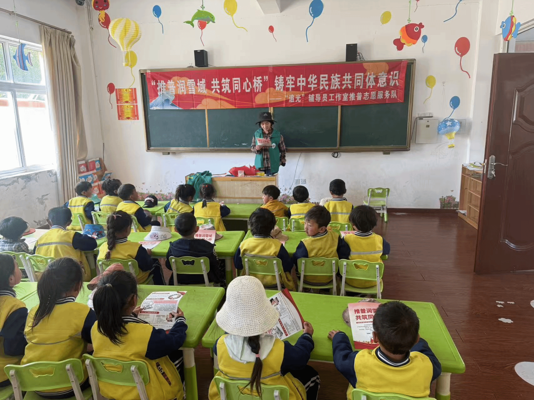 在 “拼音律动启蒙课” 上,志愿者将抽象的声母韵母转化为童趣手势:念 “b” 时双手比成小喇叭,读 “p” 时模仿吹蒲公英的动作,配合改编的藏语童谣旋律,孩子们边跳边念,原本生涩的 “n/l” 发音在挥手、转圈的律动中逐渐清晰,教室回荡着 “小白兔,爱吃菜” 的轻快童声。这种身临其境的学习体验,让孩子们深刻感受到普通话在日常生活中的重要性,也激发了他们学习普通话的积极性和主动性。