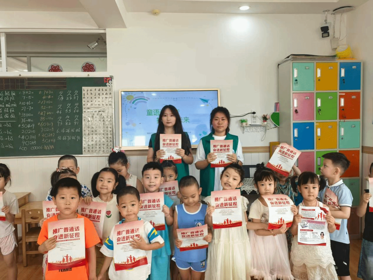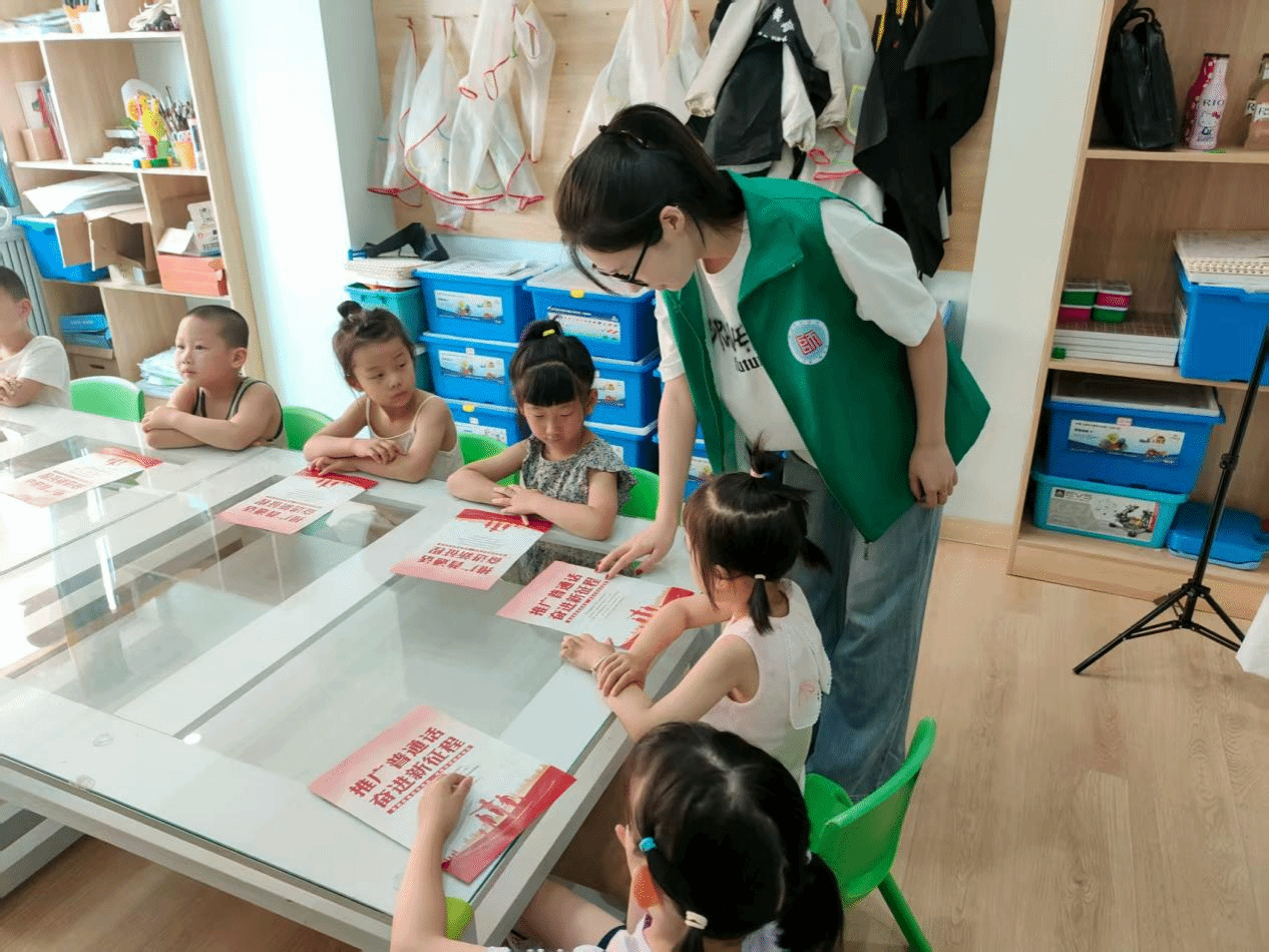 清晨的阳光洒在幼儿园的操场上,推普团队成员与孩子们围坐成圈。“大家好,我是普通话小使者!”清脆的普通话在空气中回荡,孩子们睁大好奇的眼睛,认真模仿着发言者的口型。
