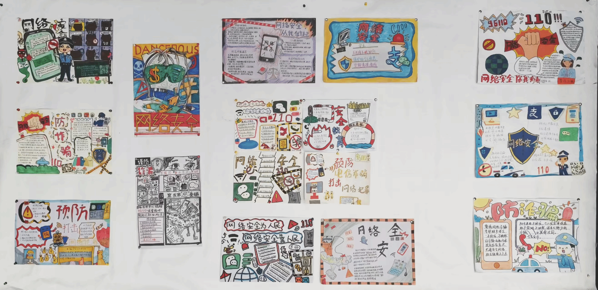 学院举办了同名手抄报比赛,收到40余幅参赛作品。同学们将所学网络安全知识融入手抄报创作。最终16幅优秀作品在行知楼大厅进行集中展示,吸引了不少同学驻足学习。