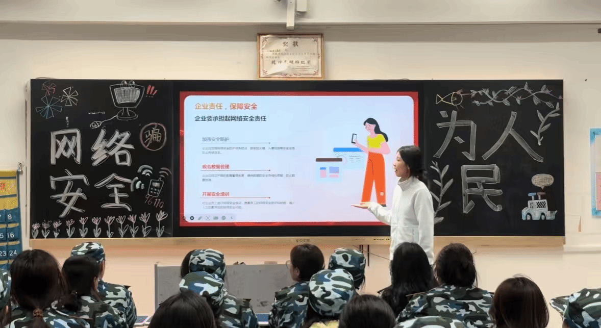 各班以网络安全为主题绘制黑板报,通过形象生动的图文展示,聚焦防范电信诈骗、“网络杀猪盘”等热点问题,直观呈现网络安全的重要性,让网络安全知识以更生动的方式走进同学们的视野。