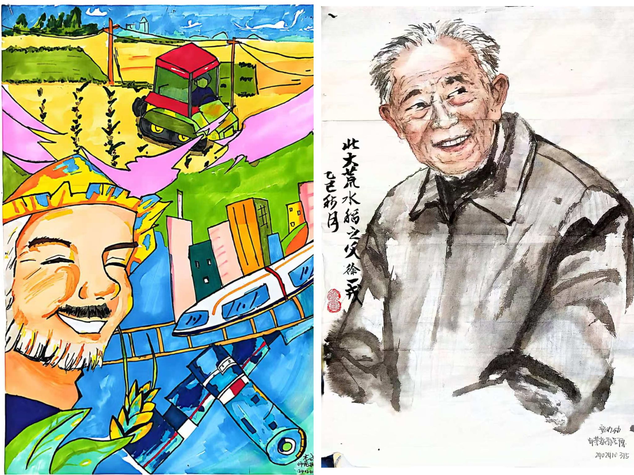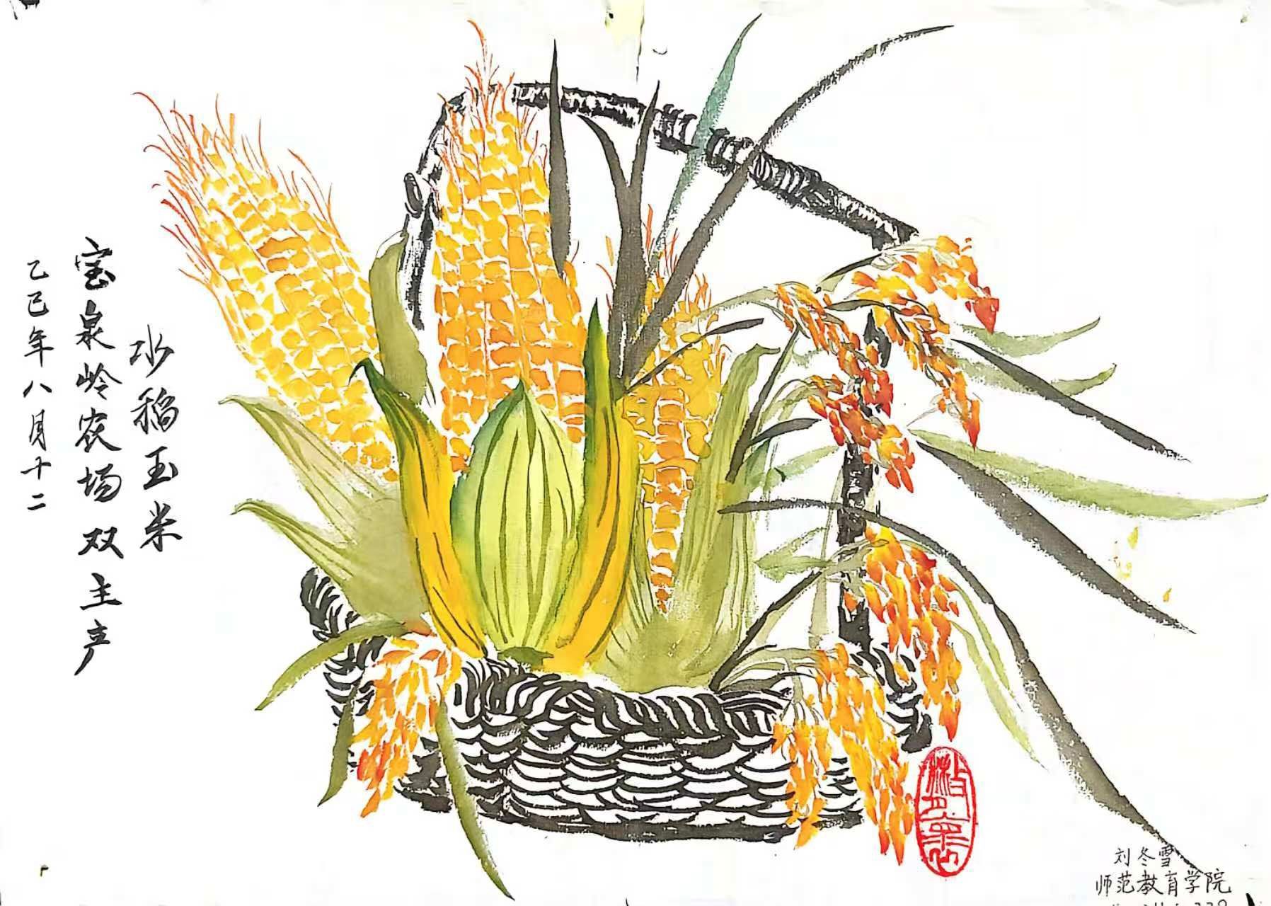 展览现场,金黄的麦浪、咆哮的老式拖拉机、“北大荒水稻之父”徐一戎的肖像等画面次第展开,吸引师生驻足拍照。“画纸不过方寸,但北大荒七十年的厚重扑面而来”,2024级小学教育专业学生安幼幼说。不少2025级新生在作品上写下“把青春写在祖国大地上”的誓言,表示希望毕业后投身乡村振兴一线。
