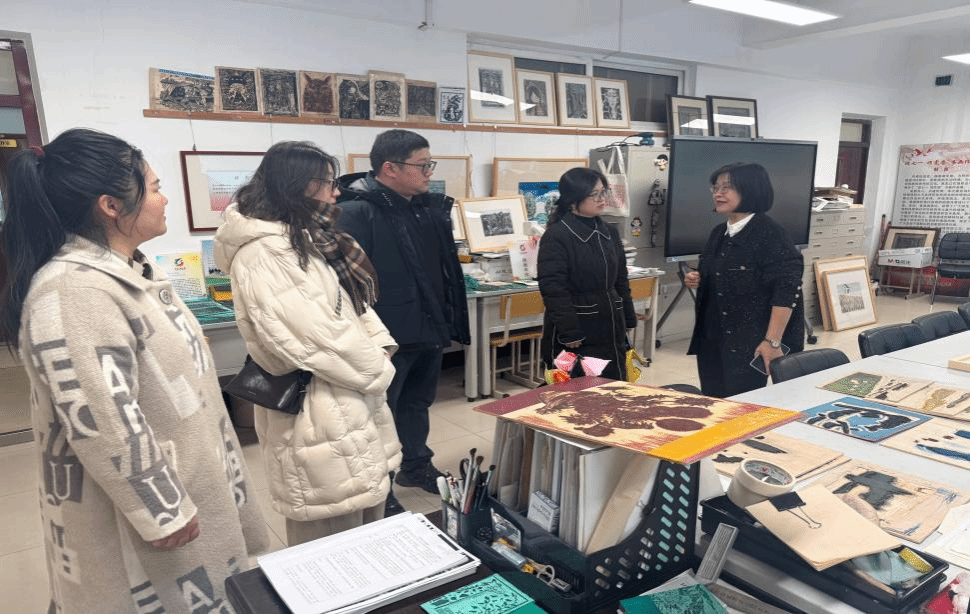 活动中,他们先后参观了北大荒版画工坊、书法创作室、手工创作室及浮雕工作室。功能齐全的教学空间与充满创意的环境布置给来访者留下了深刻的印象。特别是学生创作的那些扎根北大荒文化的版画、精巧细腻的剪纸、独具匠心的浮雕以及气韵生动的书法等作品,充分彰显了学校在培养学生审美与创新能力方面的成效,获得了参观嘉宾的一致好评。