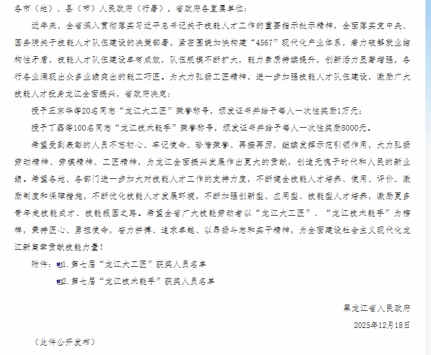 为贯彻落实省委、省政府《关于加强新时代高技能人才队伍建设的实施意见》《黑龙江省“技耀龙江照亮前程”技能人才培养专项行动方案》精神,进一步培育和弘扬工匠精神,培养选树具有优秀品质、高超技艺和创新精神的高技能领军人才,打造支撑龙江高质量发展的高素质劳动者大军。近日黑龙江省人民政府发布了《关于表彰第七届龙江大工匠和龙江技术能手获奖人员的决定》,我校教师赵超阳荣获“龙江技术能手”荣誉称号。