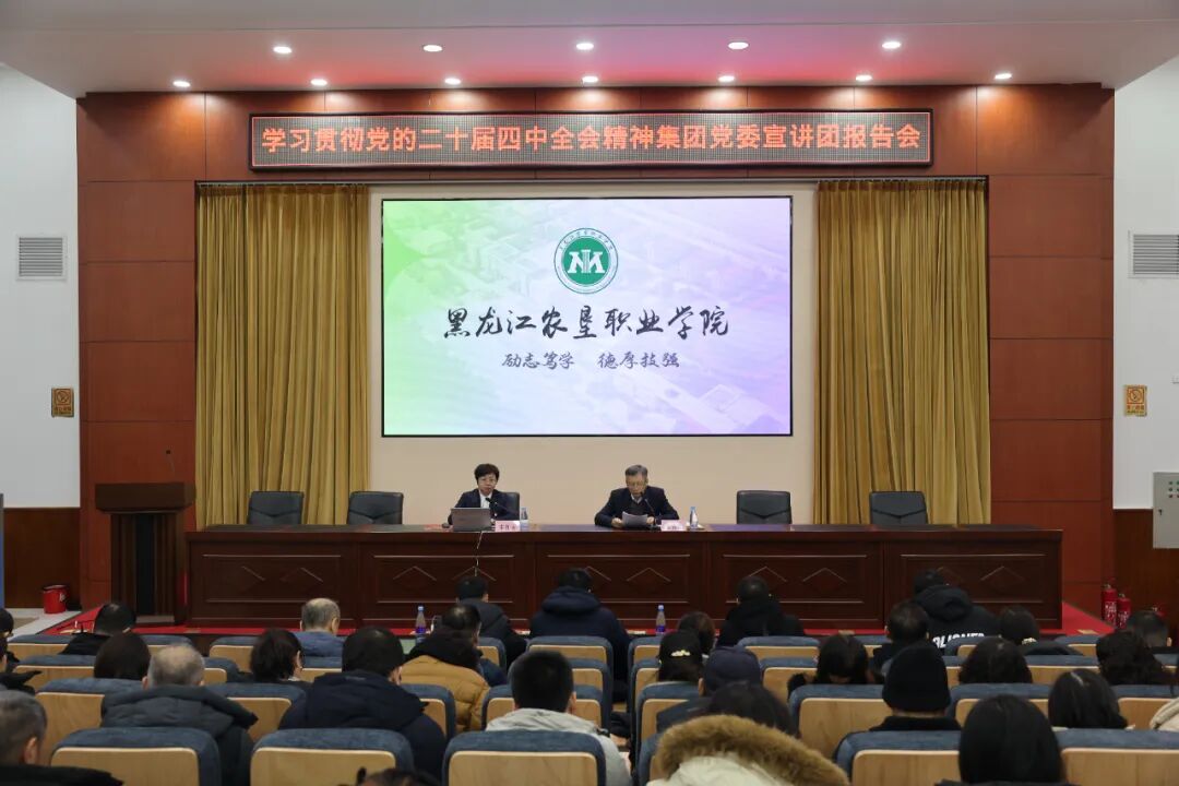 为深入贯彻落实省委、省委教育工委及北大荒集团党委关于学习贯彻党的二十届四中全会精神部署要求,统一思想、凝聚力量,推动全会精神落到学校发展实处。12月22日上午,学校举办学习贯彻党的二十届四中全会精神宣讲报告会,省委理论宣讲师资库成员、北大荒集团宣讲团骨干专家、黑龙江省农垦管理干部学院北大荒思政教学研究团队负责人宋红丽教授作宣讲报告。会议由学校党委副书记、工会主席黄鸿伟主持。学校领导班子成员、各党支部代表共计230余人聆听讲座。