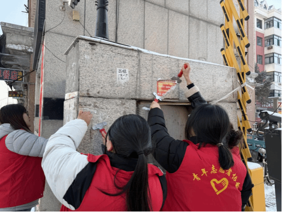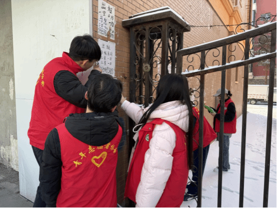校团委青年志愿者协会组织志愿者走进农垦社区,集体观看雷锋主题电影,重温雷锋同志的先进事迹,接受深刻的思想洗礼。观影结束后,大家立即投身社区环境整治行动。志愿者们分工协作、干劲十足,集中清理墙面小广告,用汗水改善社区面貌,让雷锋精神在躬行实践中熠熠生辉。