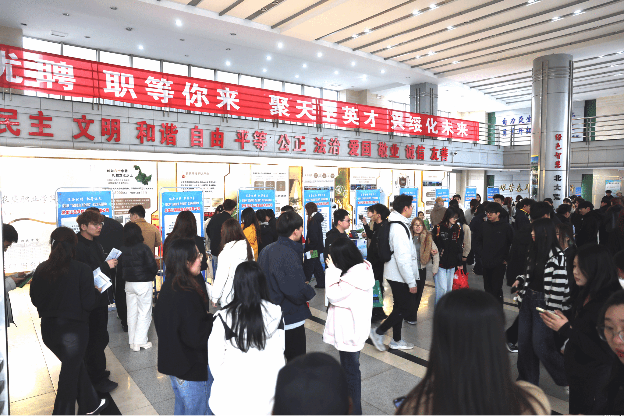 为深入贯彻落实党中央、国务院关于做好高校毕业生就业工作的决策部署,积极响应“稳就业”“保就业”号召,进一步深化校地联动、促进人才供需精准对接,4月8日,由绥化市人才中心与我校联合举办的“百站联动 百企进校”绥化市企业专场招聘会在我校举行。