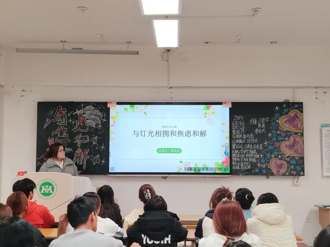 各班心理委员以“冬日焦虑小调查”为切入点,通过匿名问卷梳理出学业压力、人际关系等常见焦虑来源,用数据让同学们感受到焦虑情绪的普遍性。随后的分享会上,大家踊跃展示身边温暖瞬间:有人分享清晨食堂热粥的暖意,有人讲述挚友课间递来的笔记,这些细碎的美好如冬日微光,点亮了现场氛围,也让同学们意识到温暖从未缺席。
