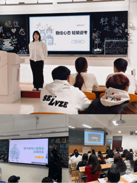 为帮助学生疏导考前不良情绪,引导其以积极健康的心态面对考试,12月11日晚自习,学院25级全体同学齐聚晚自习教室,参加“稳住心态,轻装迎考”期末心理赋能主题班会。
