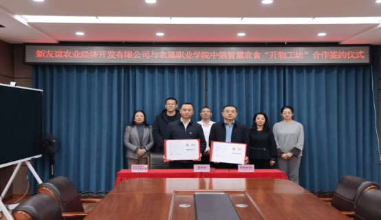 座谈会上,调研团队深入了解了农场在党建引领、科技创新与产业运营、土地发包制度体系、国家级制种大县等方面的卓越成果。同时学院结合专业优势围绕大豆种子制种生产、林下经济药材深加工、员工培训等合作方向开展务实交流,进一步明确未来的合作路径,即校企双方将以“链上党建”为引领,以基地建设、员工培训、粮食安全为路径,构建产学研协同新机制,校企协同推动“产业链、人才链、教育链、创新链”的深度融合;以开物工坊为载体,拓展农业科技国际交流空间。这一系列举措不仅强化了校企协同育人机制,更展现了学院主动服务国家粮食安全战略、助力龙江农业现代化的责任担当。会上校企共建省级“中俄智慧农食开物工坊”项目成功签约,标志着学院在服务国家“职教出海”战略、打造国际化产学研平台方面取得重要突破。