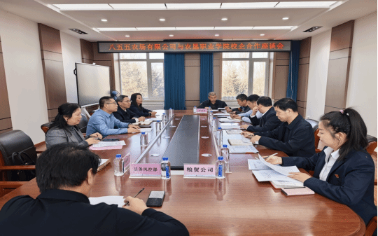 为响应国家职业教育改革方向,推动学院国际交流与合作工作,2025年11月12日,黑龙江农垦职业学院党委委员、副校长王超、副校长郭贯成率队赴北大荒集团牡丹江分公司八五五农场、黑龙江省农垦新友谊农业经济开发有限公司开展校企合作实地调研与合作交流。八五五农场党委书记、董事长张学勇,党委副书记、总经理张洪丰及相关各部门领导参加座谈,学校食品药品工程学院、经济管理学院相关负责人参加了此次调研。